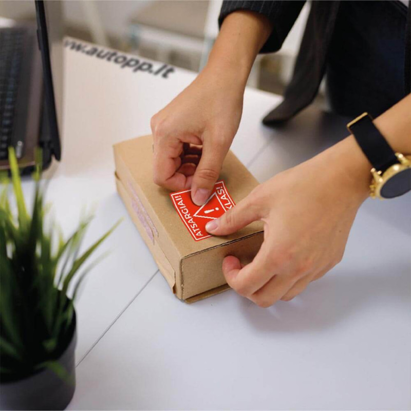 Informacinių lipdukų pagalba galite papildomai paženklinti siuntas ar pakuotes, norint, kad būtų atsargiai elgiamasi su pakuotėmis, jos nebūtų mėtomos, nebūtų kraunamos viena ant kitos ir t.t.