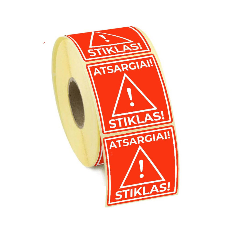 Lipnios etiketės 58x59mm – Atsargiai! STIKLAS! 100vnt.